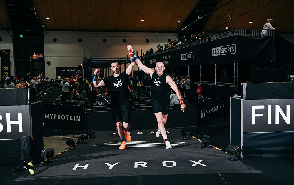 L’Hyrox est une compétition internationale de fitness qui combine 8 x 1 km de course à pied et 8 exercices fonctionnels (rameur, fentes, sled push & pull, burpees broad jump, etc.).